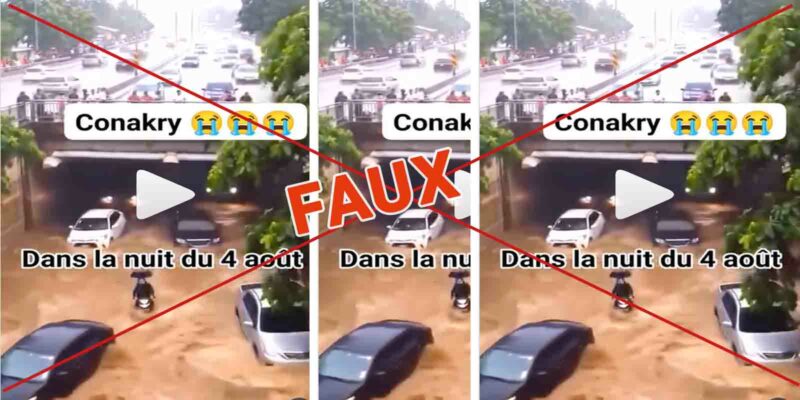 La vidéo prétendant montrer des inondations à Conakry n’a pas été prise en Guinée. Donc, c’est une vidéo sortie de son contexte.